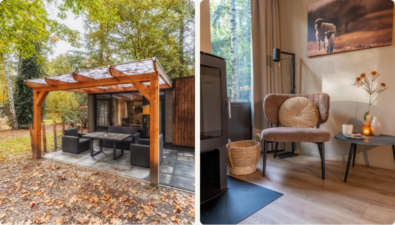 Onze bungalow, De Ree, overtreft alle verwachtingen. De woning is modern, sfeervol en voorzien van alles wat je nodig hebt: een volledig uitgeruste keuken, een houtkachel voor de koelere avonden en een luxueus ligbad midden in de slaapkamer. Terwijl we ontspannen in het warme water, kijken we door de grote ramen zo het bos in. ’s Avonds genieten we van het haardvuur – pure rust.