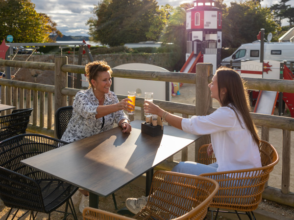 volle, groene hagen. Zo heb je voldoende rust en privacy. Kampeerders hoeven niet naar drukke stranden voor een verfrissende duik of een spelletje in het zand. De camping is namelijk direct gelegen aan een kiezelstrand, en het zandstrand ligt op slechts 200 meter afstand. Of neem een duik in het verwarmde zwembad. Heb je juist zin in een actieve bezigheid? Leef je lekker uit op de padelbaan, de jeu de boules-baan of op het sportveld. Neem daarna ook lekker plaats bij onze bistro met terras voor een verkoelend drankje.