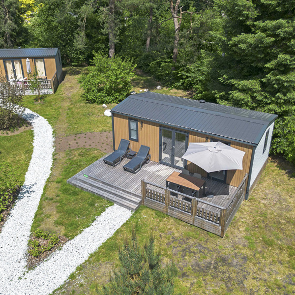 Als je op zoek bent naar alle gemakken van thuis, dan zijn onze ruime chalets met zuidelijk gelegen terras iets voor jou. Ze zijn licht en vanuit de woonkamer en de open keuken heb je een prachtig uitzicht op het bos.