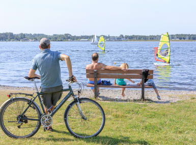 Naast de plaatsen met uitzicht op het water zijn er ook plaatsen met beschutting van bomen en struiken. Je hebt altijd voldoende plek om te relaxen of te spelen bij je tent.